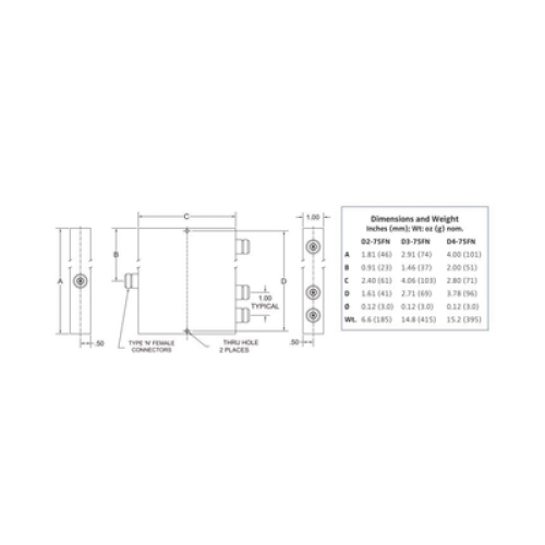 La serie Microlab modelo Dx-75FN de divisores de potencia estilo Wilkinson ha sido diseñada para aplicaciones de divisores de potencia de 50 W donde el aislamiento de salida es preferible a la pérdida más baja posible.
