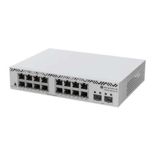 Switch MikroTik con 16 Puertos Gigabit Ethernet / 2 Puertos SFP+ 10G / Filtrado MAC y VLANs / SwOS Configuración Web