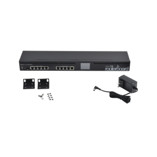 RouterBOARD 2011UiAS-RM, en comparación con la serie RB2011L, no solo tiene cinco puertos Gigabit LAN y cinco puertos Fast Ethernet LAN, sino también un puerto serie RJ45, puerto microUSB y más RAM (128 MB en lugar de 64 MB). Además, tiene licencia RouterOS L5 (en lugar de L4) y una pantalla LCD táctil agradable para la configuración. Un slot SFP (¡el módulo SFP no está incluido!).