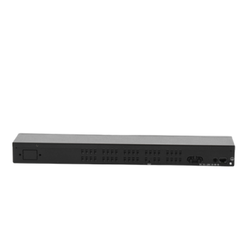 La unidad RB3011UiAS-RM viene con un gabinete de montaje en rack de 1U, un panel LCD de pantalla táctil, un puerto de consola serie y funcionalidad de salida PoE en el último puerto Ethernet.