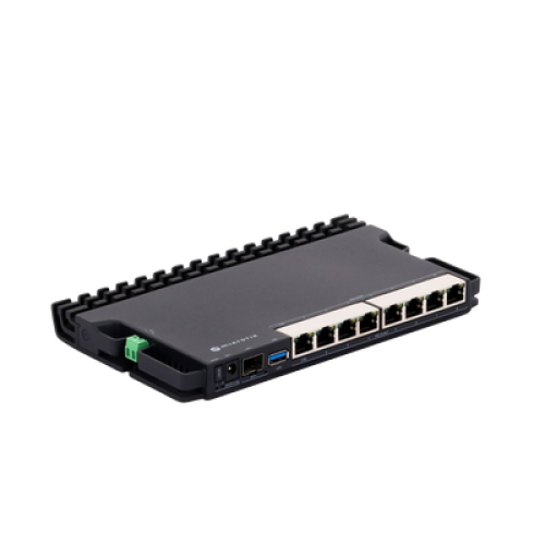 Cada puerto PoE-out puede suministrar hasta 25 W de potencia. Todos los puertos combinados están limitados a 130 W, lo que debería ser suficiente para la mayoría de las configuraciones. Puede especificar la máxima potencia disponible de sus fuentes de alimentación manualmente, si es necesario. Cuando se trata de características PoE-out, el nuevo RB5009 puede intercambiar golpes con nuestros legendarios interruptores PoE: CRS354 y CRS328. ¡En el factor de forma más pequeño posible y al mejor precio del mercado!