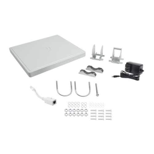 El QRT 5 es una antena resistente de panel ideal para exterior con un Routerboard incorporado. El dispositivo tiene una antena de 24 dBi y un transmisor inalámbrico de alta potencia de 5 GHz.