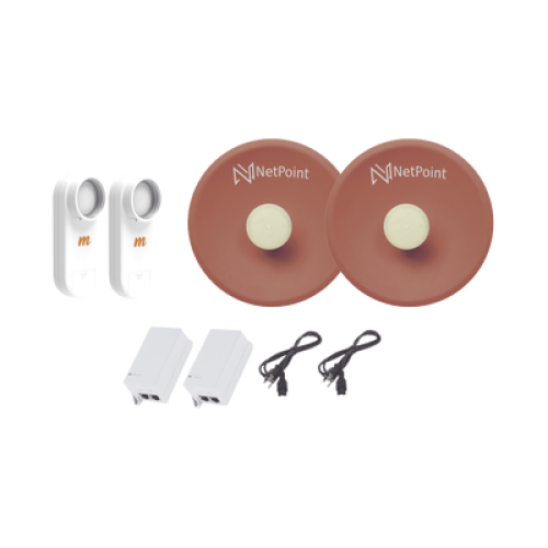 Kit de 2 radios C5X con antenas NPPROS2PACK (27 dBi), rango de frecuencia extendida (4.9 a 6.4 GHz), incluye inyector POE y cable de alimentación