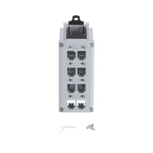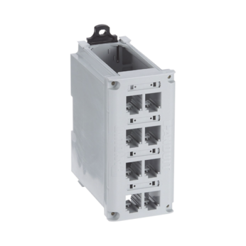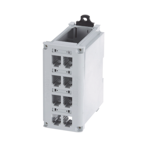 Panel de Parcheo Modular para Cobre, Blindado, de Instalación en Riel DIN Estándar de 35 mm (1.38 pulgadas), 8 Puertos Mini-Com, Color Gris