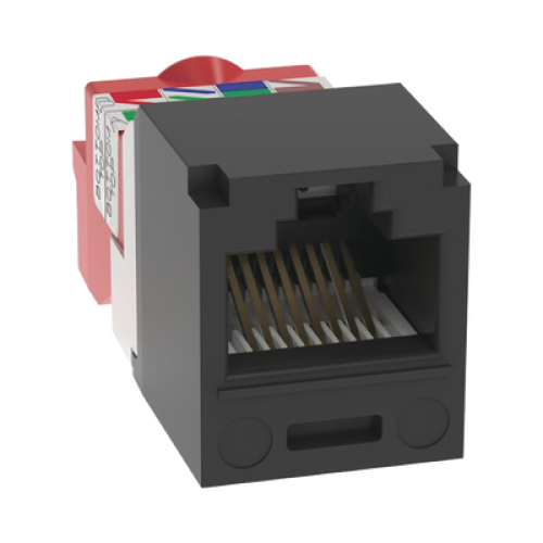 El módulo de conector UTP Categoría 5e/Clase D de 8 posiciones, se termina en cable de 4 pares 22 - 24 AWG de par trenzado sin blindaje de 100 ohms y no requiere el uso de una herramienta de impacto. Los módulos de conector UTP usan un método de terminación de movimiento hacia adelante para optimizar el rendimiento al mantener la geometría del par de cables mientras se elimina el destrenzado del conductor. La tapa de terminación esta codificada por color blanco para designar el rendimiento de la Categoría 6 e incluye una etiqueta universal codificada para los esquemas de cableado T568A y T568B.
