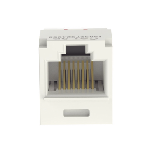 El módulo de conector UTP Categoría 5e/Clase D de 8 posiciones, se termina en cable de 4 pares 22 - 24 AWG de par trenzado sin blindaje de 100 ohms y no requiere el uso de una herramienta de impacto. Los módulos de conector UTP usan un método de terminación de movimiento hacia adelante para optimizar el rendimiento al mantener la geometría del par de cables mientras se elimina el destrenzado del conductor. La tapa de terminación esta codificada por color blanco para designar el rendimiento de la Categoría 6 e incluye una etiqueta universal codificada para los esquemas de cableado T568A y T568B.