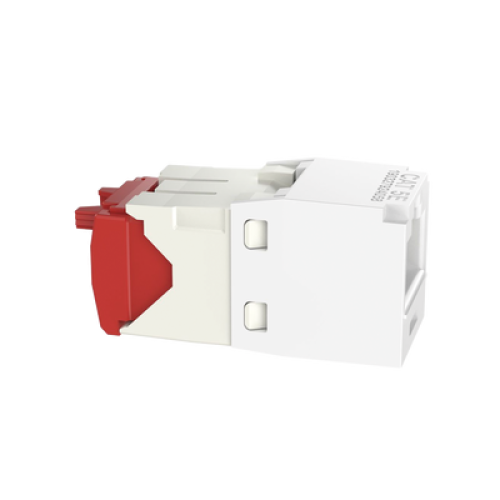 El módulo de conector UTP Categoría 5e/Clase D de 8 posiciones, se termina en cable de 4 pares 22 - 24 AWG de par trenzado sin blindaje de 100 ohms y no requiere el uso de una herramienta de impacto. Los módulos de conector UTP usan un método de terminación de movimiento hacia adelante para optimizar el rendimiento al mantener la geometría del par de cables mientras se elimina el destrenzado del conductor. La tapa de terminación esta codificada por color blanco para designar el rendimiento de la Categoría 6 e incluye una etiqueta universal codificada para los esquemas de cableado T568A y T568B.