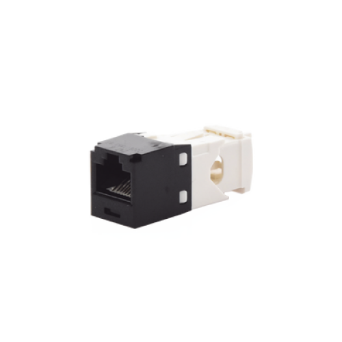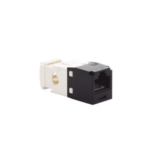 El módulo de conector UTP Categoría 6/Clase E de 8 posiciones, se termina en cable de 4 pares 22 - 26 AWG de par trenzado sin blindaje de 100 ohms y no requiere el uso de una herramienta de impacto. Los módulos de conector UTP usan un método de terminación de movimiento hacia adelante para optimizar el rendimiento al mantener la geometría del par de cables mientras se elimina el destrenzado del conductor. La tapa de terminación esta codificada por color blanco para designar el rendimiento de la Categoría 6 e incluye una etiqueta universal codificada para los esquemas de cableado T568A y T568B.