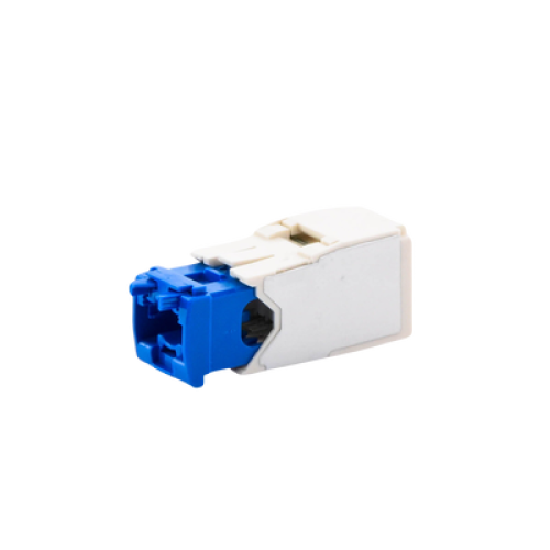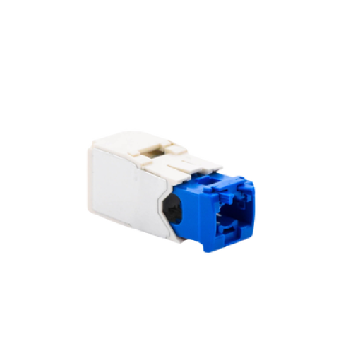 El módulo de conector UTP Categoría 6A/Clase EA de 8 posiciones, se termina en un cable de par trenzado sin blindaje de 4 pares, 22 - 26 AWG d 100 ohms y no requiere el uso de una herramienta de impacto. La tapa de terminación tiene un código de color azul para designar el rendimiento de la Categoría 6A e incluye una etiqueta universal codificada para los esquemas de cableado T568A y T568B. El módulo de conector Mini-Com® TX6A 10Gig UTP se instala como parte del sistema de cableado de cobre TX6A 10Gig UTP para lograr el rendimiento certificado IEEE 10GBASE-T.