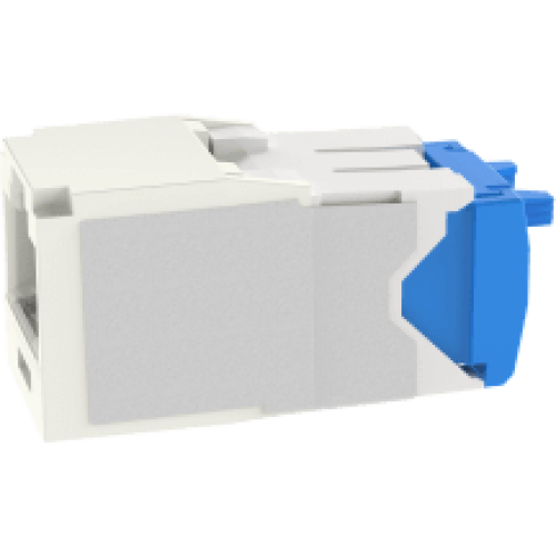 El módulo de conector UTP Categoría 6A/Clase EA de 8 posiciones, se termina en cable de 4 pares 22 - 26 AWG de par trenzado sin blindaje de 100 ohms y no requiere el uso de una herramienta de impacto. Los módulos de conector UTP usan un método de terminación de movimiento hacia adelante para optimizar el rendimiento al mantener la geometría del par de cables mientras se elimina el destrenzado del conductor. La tapa de terminación esta codificada por color blanco para designar el rendimiento de la Categoría 6 e incluye una etiqueta universal codificada para los esquemas de cableado T568A y T568B.