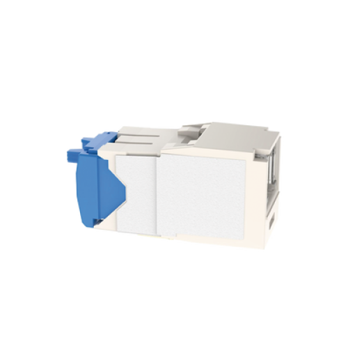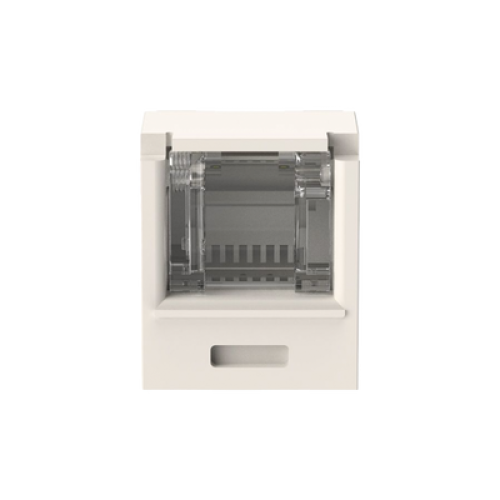 El módulo de conector UTP Categoría 6A/Clase EA de 8 posiciones, se termina en cable de 4 pares 22 - 26 AWG de par trenzado sin blindaje de 100 ohms y no requiere el uso de una herramienta de impacto. Los módulos de conector UTP usan un método de terminación de movimiento hacia adelante para optimizar el rendimiento al mantener la geometría del par de cables mientras se elimina el destrenzado del conductor. La tapa de terminación esta codificada por color blanco para designar el rendimiento de la Categoría 6A e incluye una etiqueta universal codificada para los esquemas de cableado T568A y T568B.