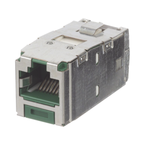 Conector Jack RJ45 Blindado, Estilo TG, Mini-Com, Categoría 6A, de 8 Posiciones y 8 Cables, Color Verde