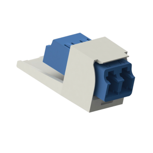 Módulo Acoplador LC Duplex, para Fibra Óptica Monomodo OS1/OS2, Tipo Mini-Com, Color Blanco Mate