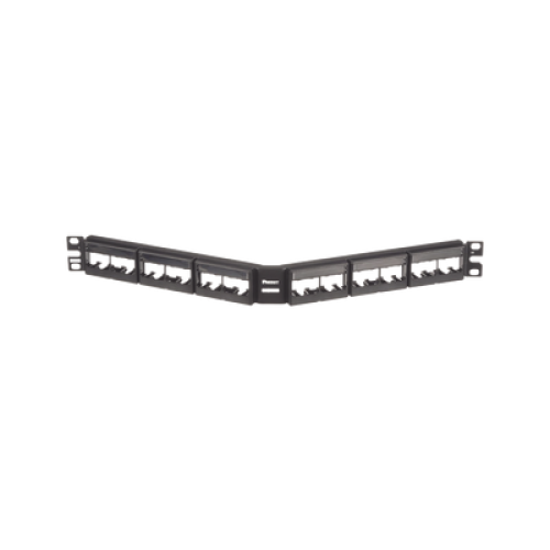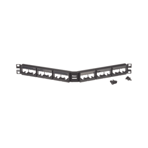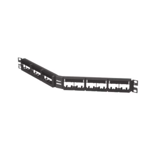 Panel de Parcheo Modular Mini-Com (Sin Conectores), Angulado, Sin Blindaje, Con Etiqueta y Cubierta, de 24 Puertos, 1UR