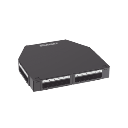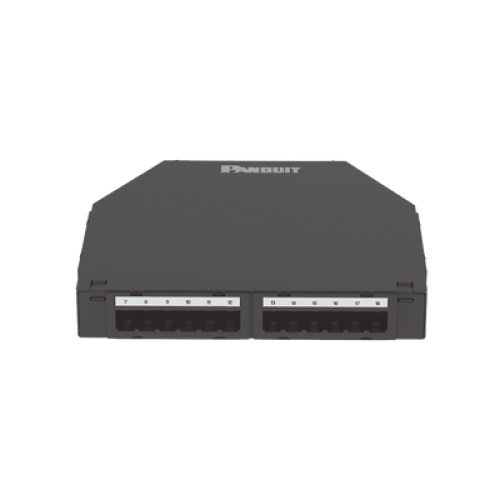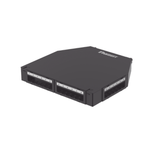 Punto de Consolidación de 24 Puertos Mini-Com, Instalación en Piso o Pared, Fabricado en Aluminio, Color Negro