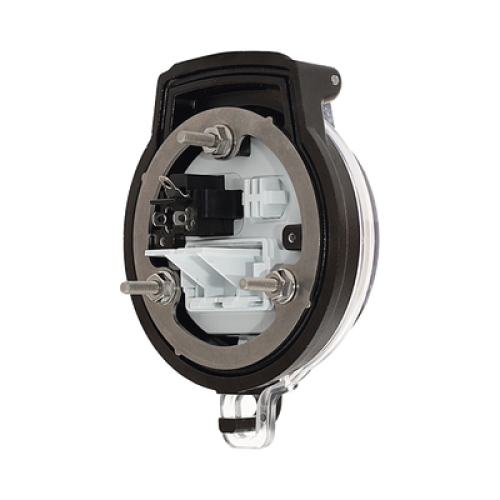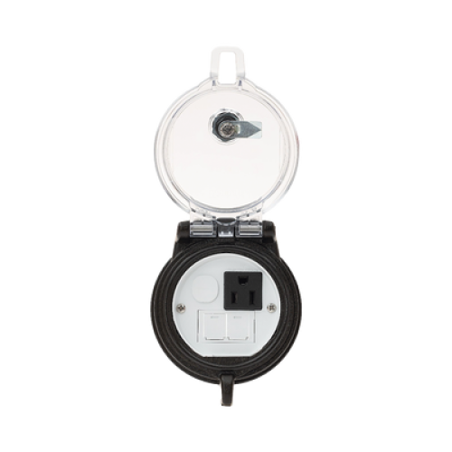 Dispositivo Circular de Puertos de Acceso a Datos, Con Dos Espacios Para Módulos Mini-Com y Un Receptáculo NEMA 5-15R, Protección IP66, de 3" de Diámetro