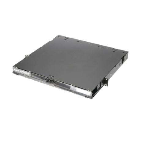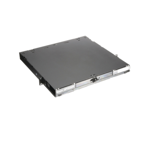 Panel de Distribución de Fibra Óptica, Acepta 4 Placas FAP o FMP, Bandeja Deslizable e Inclinable Hacia Abajo, Hasta 96 Fibras, Color Negro, 1UR