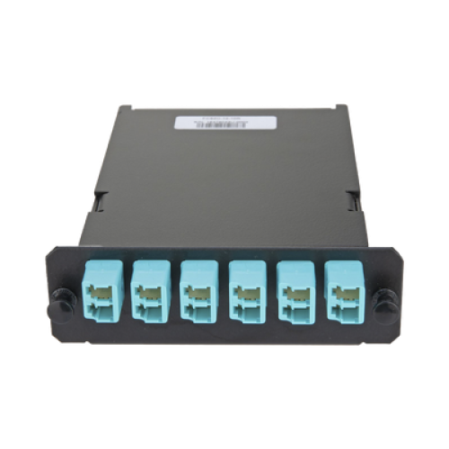 Placa Acopladora de Fibra Óptica FAP, Con 12 Pigtails Ribbon y 6 Conectores LC Duplex (12 Fibras), Para Fibra Multimodo OM3/OM4, Color Aqua