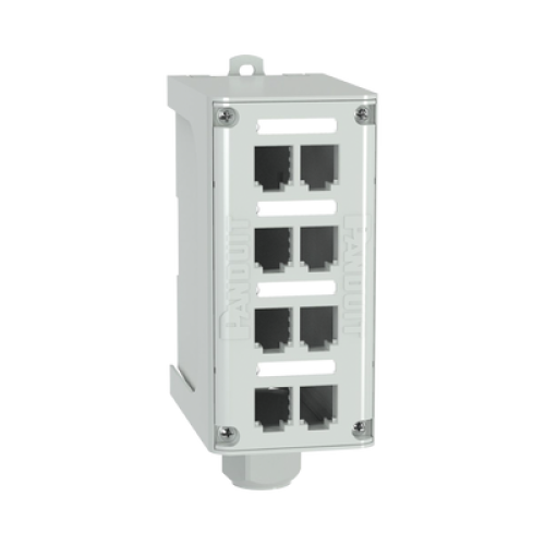 Panel de Parcheo Modular para Fibra Óptica, de Instalación en Riel DIN Estándar de 35mm, 8 Puertos Mini-Com, Color Gris