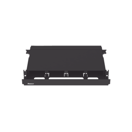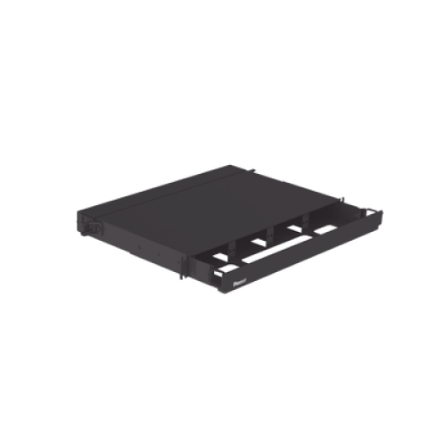 Panel de Distribución de Fibra Óptica, Acepta 4 Placas FAP o FMP, Bandeja Deslizable, Hasta 96 Fibras, Color Negro, 1UR