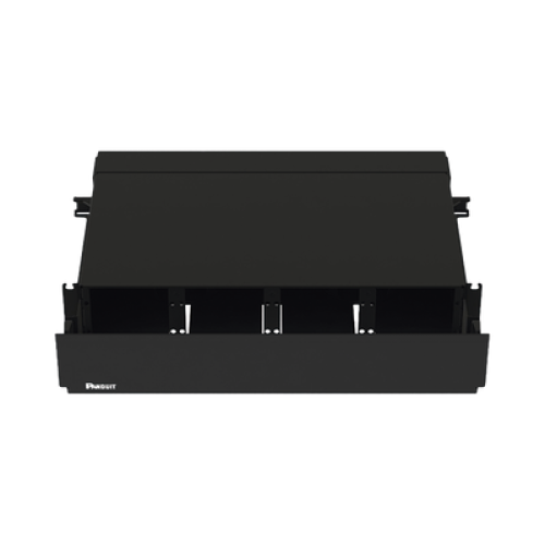 Panel de Distribución de Fibra Óptica, Acepta 8 Placas FAP o FMP, Bandeja Deslizable, Hasta 192 Fibras, Color Negro, 2 UR