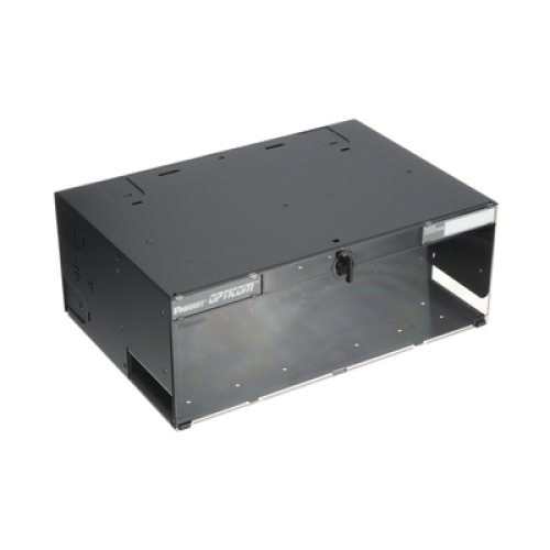 Panel de Distribución de Fibra Óptica, Acepta 12 Placas FAP o FMP, Bandeja Deslizable e Inclinable Hacia Abajo, Hasta 288 Fibras, Color Negro, 4UR