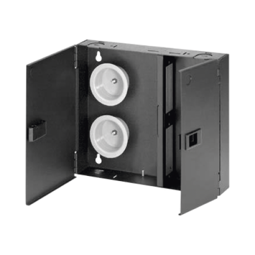 Caja de Conexión de Fibra Óptica, Para Montaje en Pared, Acepta 2 Placas FAP o FMP, Hasta 48 Fibras, Color Negro