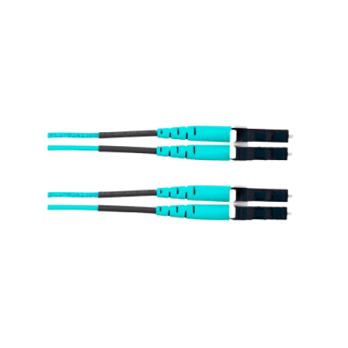Jumper de Fibra Optica Multimodo 50/125 OM4, LC-LC Duplex, OFNR (Riser), Color Aqua, 25 Metros