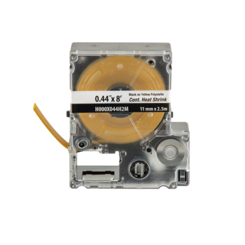 Casete de Etiquetas Continuas Termorretráctil 11.2 mm. de Ancho x 2.4 Metros (7.87 Pies) de Largo. Poliolefina Amarilla