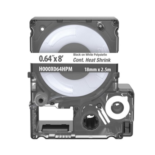 Casete de Etiquetas de Poliolefina de Cinta Continua, Tubo Termocontráctil, 16.3 mm (0.64 pulgadas) de Ancho y 2.4 metros (7.87 pies) de Largo, Para Cables de 5.3 a 10.9 mm (8 - 2 AWG) de Diámetro, Color Blanco