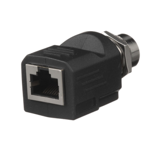 Adaptador IndustrialNet™ de M12 D-Code a Rj45, para Uso en Redes Industriales, Protección IP20 en RJ45 e IP68 en M12, Color Negro