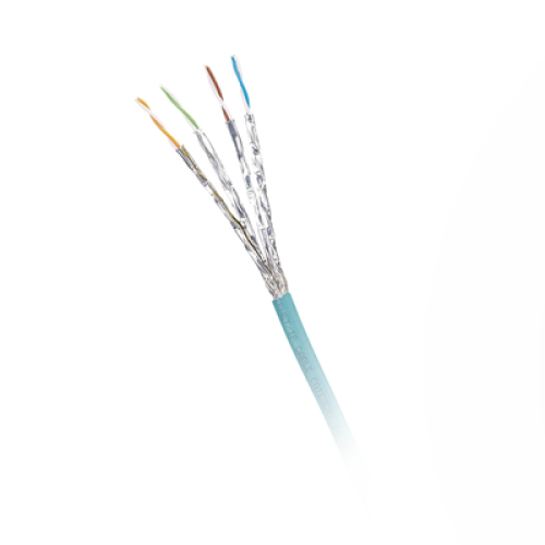 Bobina de Cable Blindado S/FTP Categoría 6A, Uso Industrial con Resistencia al Aceite, Rayos UV y Abrasión, Multifilar (Flexible), Color Azul Cerceta, Bobina de 500 Metros (1640 Pies)