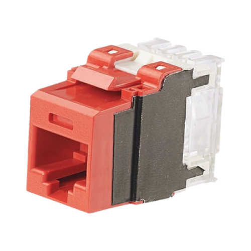 Conector Jack Estilo 110 (de Impacto), Tipo Keystone, Categoría 6A, de 8 Posiciones y 8 Cables, Color Rojo