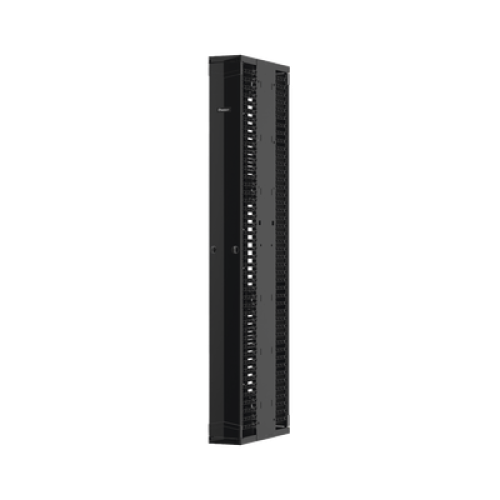 Organizador Vertical PatchRunner™ Mejorado, Doble (Frontal y Posterior), Para Rack Abierto de 45 Unidades, 12in de Ancho, Color Negro