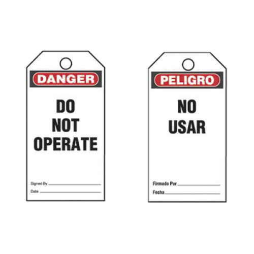 Paquete de 25 Etiquetas de Seguridad, Con Texto "Peligro, No Usar", de 76 x 146 mm, Color Negro Sobre Blanco