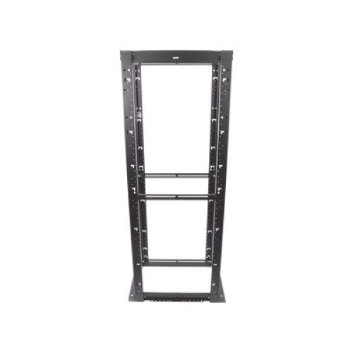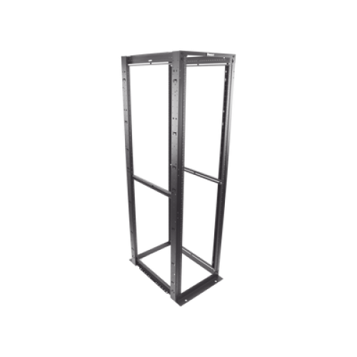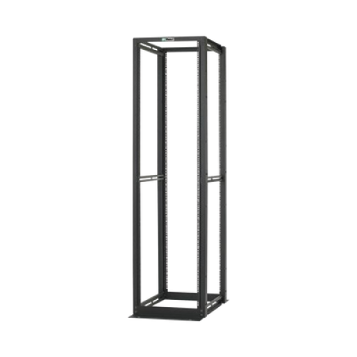 Rack de cuatro postes que cumple con los estándares EIA-310D y está construido en acero capaz de aceptar equipo de 19' EIA. El método de construcción del rack se asegura de una estructura eléctricamente unida para facilitar la conexión a tierra.