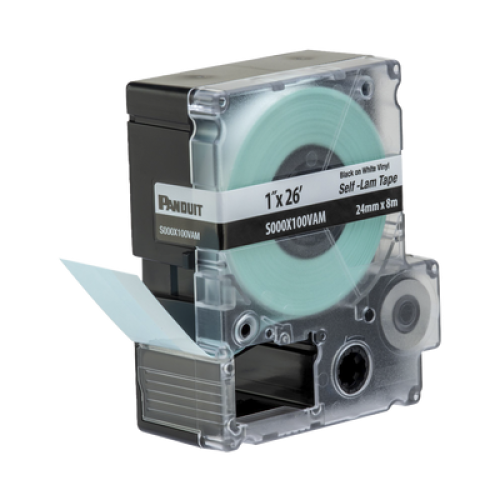 Casete de Etiquetas Autolaminadas de Cinta Continua, de 24 (1 Pulgada) mm de Ancho, 8 Metros (26.25 Pies) de Largo, Para Cables de 2.5 a 5.1 mm (0.1 a 0.2 Pulgadas) de Diámetro, Color Blanco