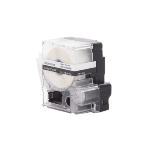 Casete de 200 Etiquetas Autolaminadas de 12.7 x 31.8 mm (0.5 x 1.25 pulgadas), para Cables de 3.1 a 7 mm (0.12 a 0.28 pulgadas) de Diámetro, Área de Impresión Color Blanco