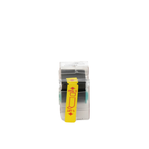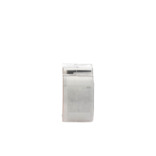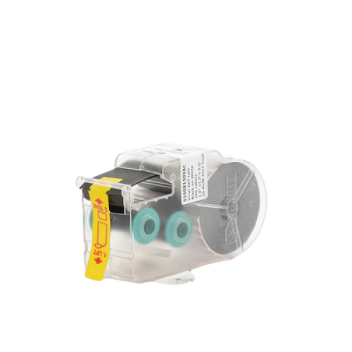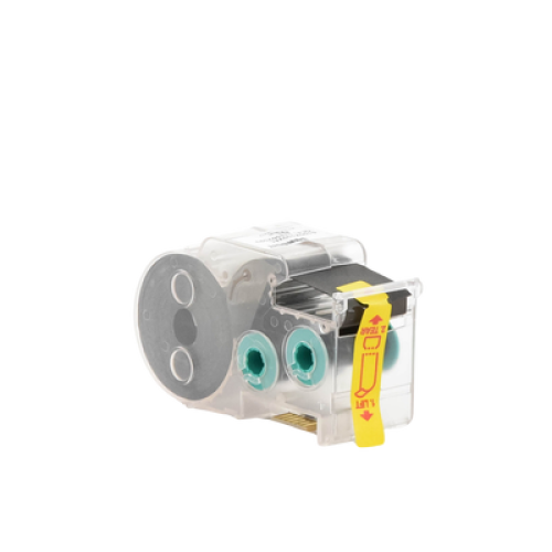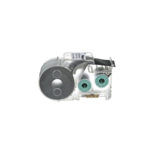 La etiqueta autolaminable de transferencia térmica S100X150VAC incluye un área de impresión blanca y un sobrelaminado transparente para proteger la leyenda y facilitar su identificación. Tiene un tamaño específico para aplicaciones de alambres y cables. El casete contiene un dispositivo de memoria integrado para el formateo automático, la recuperación de la última leyenda utilizada y el número de etiquetas restantes.