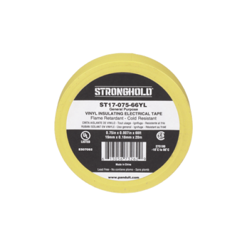 Cinta Eléctrica STRONGHOLD para Aislar, de PVC, Uso General Reparación y Mantenimiento, Grosor de 0.18mm (7 mil), Ancho de 19mm, y 20.12m de Largo, Color Amarillo