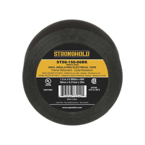 Cinta Eléctrica STRONGHOLD para Aislar, de PVC, Trabajo Pesado Eléctrico Industrial (Soporta UV, abrasión, agua, aceite y corrosión), Grosor de 0.21 mm (8.5 mil), Ancho de 38 mm, y 20 m de Largo, Uso Interior/Exterior, Color Ne