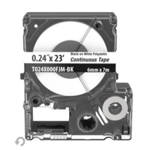 Casete de Etiquetas de Poliolefina de Cinta Continua, Color Negro Sobre Blanco, Uso Interior/Exterior, 5.82 mm de Ancho x 7 Metros (22.97 Pies) de Largo