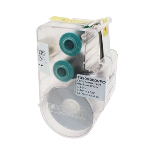 Casete de Etiqueta de Vinilo de Cinta Continua, Color Negro Sobre Blanco, Uso Interior/Exterior, 12.7 mm de Ancho x 7.6 Metros (24.93 Pies) de Largo