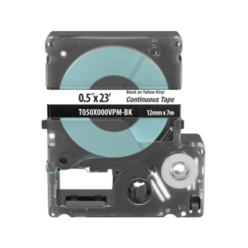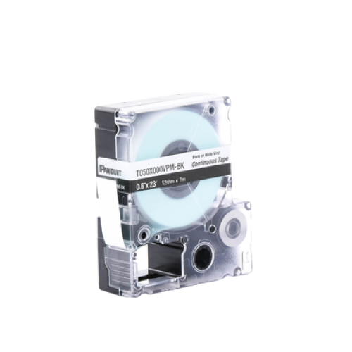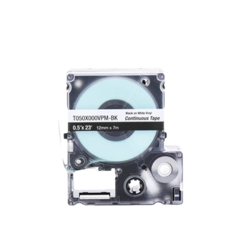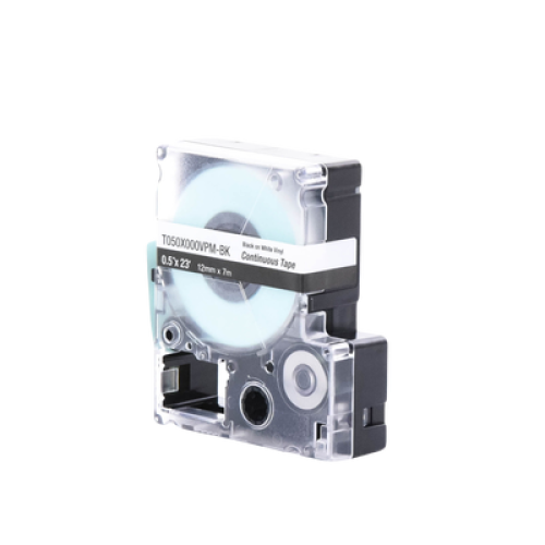 Casete de Etiquetas de Vinilo de Cinta Continua, Color Negro Sobre Blanco, Uso Interior/Exterior, 12 (0.5 Pulgadas) mm de Ancho x 7 Metros (22.97 Pies) de Largo