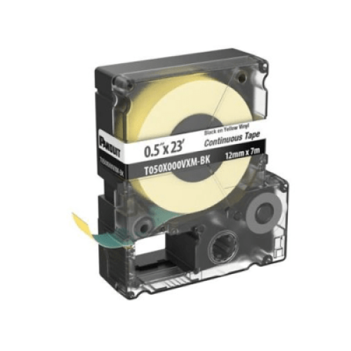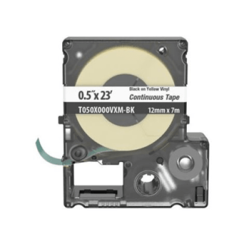 Casete de Etiquetas de Vinilo de Cinta Continua, Color Negro Sobre Amarillo, Uso Interior/Exterior, 9 mm de Ancho x 7 Metros (22.97 Pies) de Largo