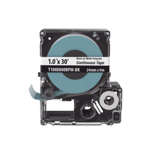 Casete de Etiquetas de Poliéster de Cinta Continua, Color Negro Sobre Blanco, Uso Interior/Exterior, 24 mm (0.94 Pulgadas) de Ancho x 9.1 Metros (29.86 Pies) de Largo