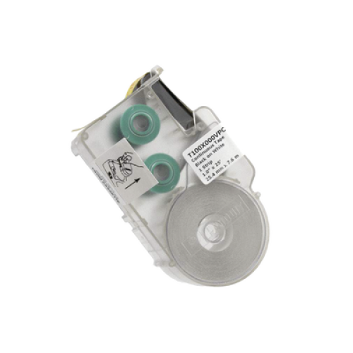 Casete de Etiquetas de Vinilo de Cinta Continua, Color Negro Sobre Blanco, Uso Interior/Exterior, 25.4 mm de Ancho x 7.6 Metros de Largo (24.93 Pies)