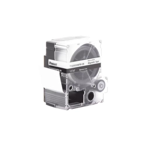 El casete de cinta continuo magnético T150X000MPM-BK incluye material de etiquetas y cinta para facilitar el cambio. Imprima marcadores de tuberías personalizados, marcadores de voltaje, letreros, marcadores de contenedores y etiquetas de identificación. Solo para superficies planas. Para usar con la impresora MP300.