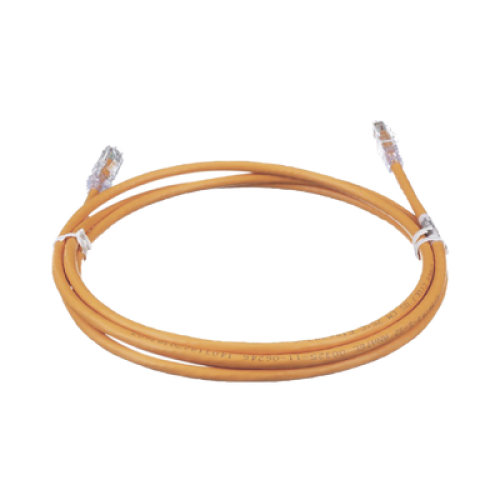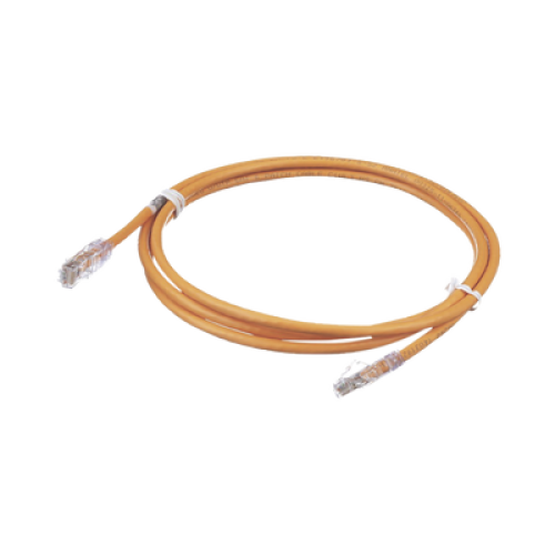 Los cables de parcheo UTP Categoría 6/Clase E se construyen con un cable de cobre de par trenzado sin blindaje de 24 AWG, con un plug modular de rendimiento mejorado en cada extremo. El cable de conexión se ofrece en un cable UTP de varios colores para una flexibilidad de diseño con una funda de alivio de tensión clara en cada enchufe modular. Todos los cables de conexión deberán ser compatibles con los esquemas de cableado T568A y T568B.