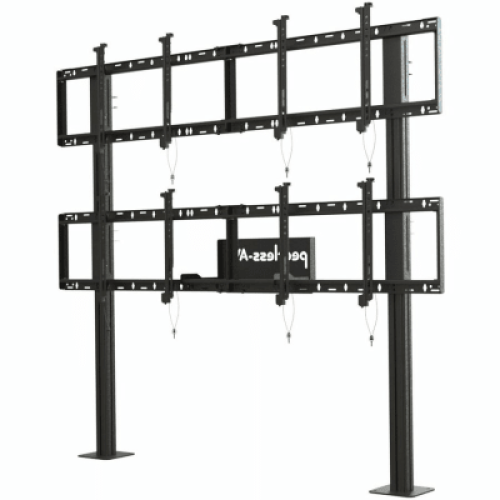 Soporte Modular para Video Wall Pedestal 2x2 / Ajuste Micro Sin Herramientas / 8 Puntos de Alineación / Capacidad 500 lb / VESA 200x200 a 600x400 mm / Estructura Aluminio / Gestión Cableado Integrada / Almacenamiento Multimedia